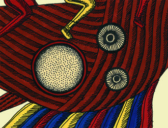There are a few ways in which artists or illustrators and book designers can work together in the context of communication design. A friend of mine who works in publishing regularly commissions and art directs illustrators to fulfil her vision for book jackets. Here, the role of both is quite clear and fixed. The book designer provides conceptual direction and even design samples and hints. Speaking generally, it is the designer that is the driving force of the work. The illustrator ‘envisions’ the designer’s concept using a particular illustration style and media.